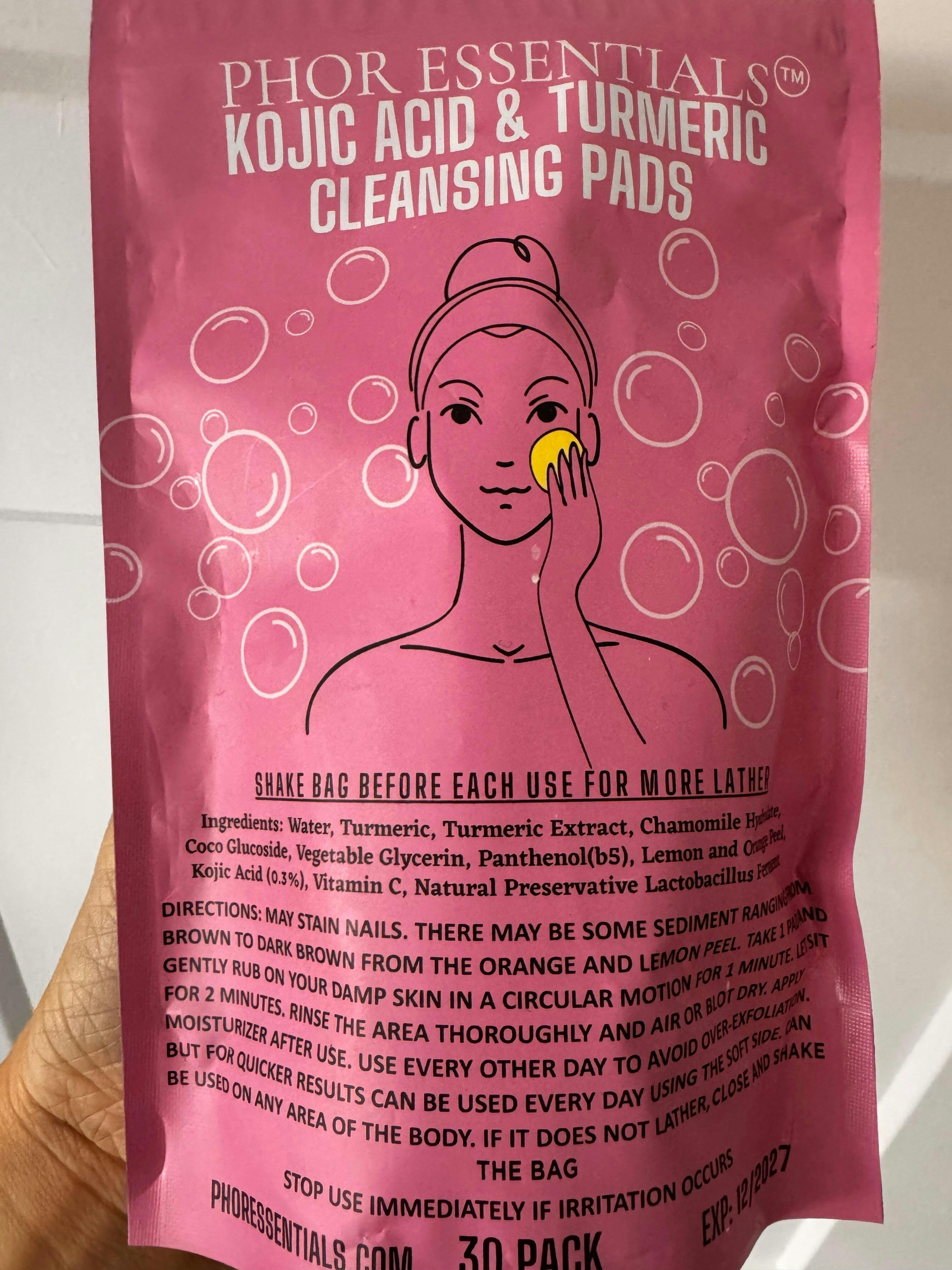 Turmeric and Kojic Acid cleansing exfoliating pads are an all-natural clear skin product for exfoliation. With regular use, you will achieve rejuvenated skin with less dark spots or marks. Dark marks on your face will slowly disappear. Works for both oily skin as well as dry skin.
